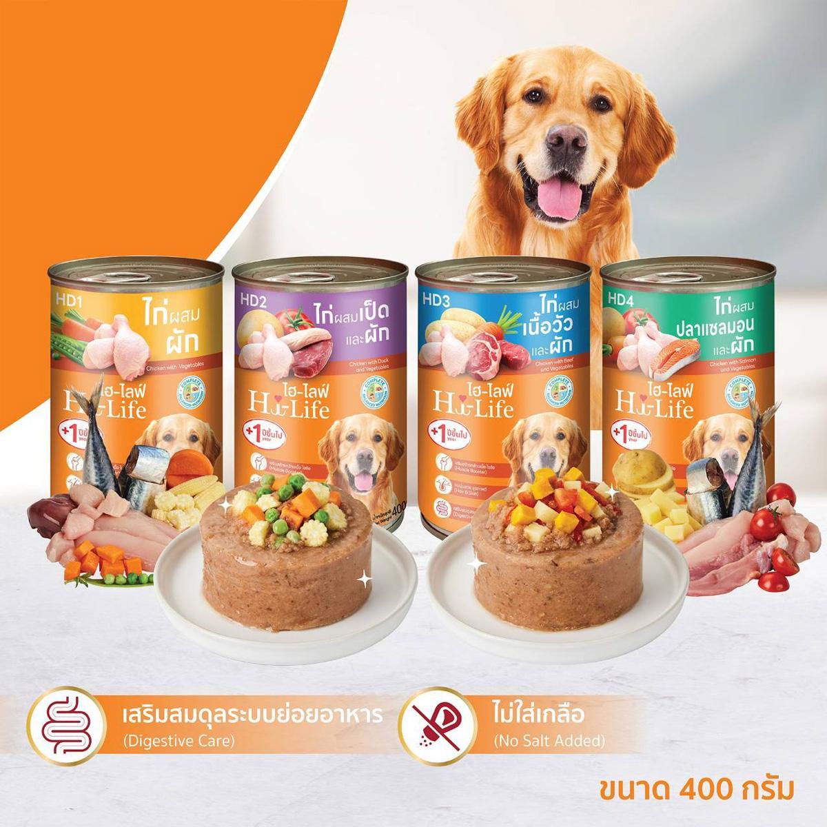 Hi-Life ไฮไลฟ์ อาหารเปียกสุนัขกระป๋อง สำหรับสุนัขโต ดูแลขนและผิวหนัง ระบบย่อยอาหาร Complete & Balanced ขนาด 400 กรัม